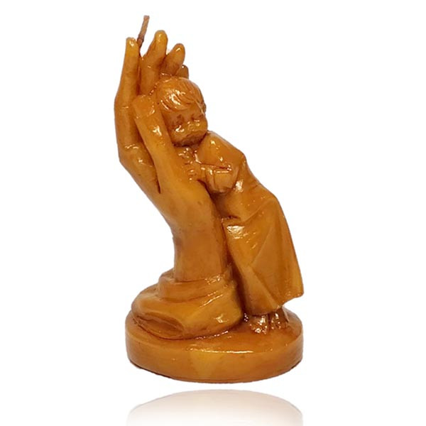 Ambrozis® – Kisfiú kézben méhviasz gyertya: kézzel öntött, 100% tiszta méhviasz gyertya, amely az oltalmazó szeretetet és a biztonságot jelképezi.