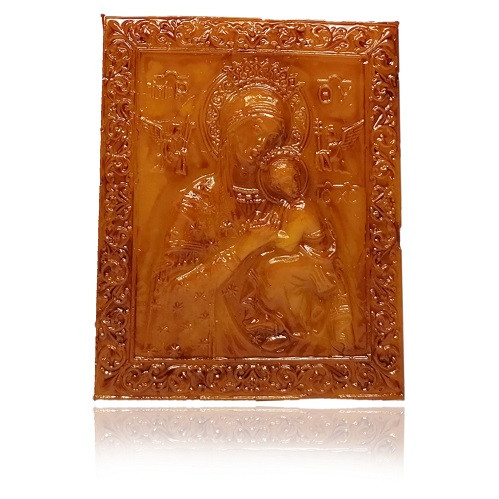 Ambrozis® – Mária gyermekkel méhviasz falikép tömjénnel: kézzel készült falidísz, tiszta méhviaszból és tömjénnel, ikonikus ábrázolással.